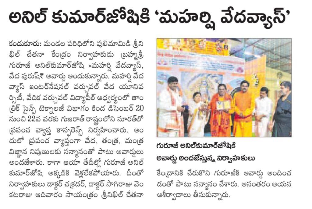 In the year 2018, MVIVVU created awards to recognize the global talents who have contributed in the various disciplines / fields of Vedic Hinduism / Vedic -Tantra Knowledge / Vedic Sciences / Tantric Sciences etc. Following awards were created in various categories: 1. “Maharishi VedVyas VedaPurush Award” & “Maharshi VedVyas VedaSansthan Pravartak Award”, 2. “Global Tantra Excellence Award”; 3. “Global Vedic Scientist Award”; 4. “Global Vedic Rishika Award”: 5.”Global Nachiketa Vedic Award” 6. “Global Viswakarma Vedic Fine Arts Award” etc.